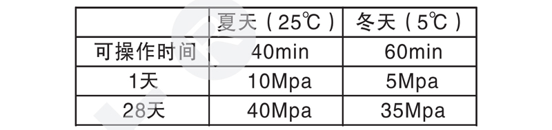 3、 超級(jí)早強(qiáng):本品在夏天6小時(shí)后可開放人行,12小時(shí)后可開放交通;冬天低溫時(shí),24小時(shí)可開放人 行,48小時(shí)可承受車行運(yùn)輸。