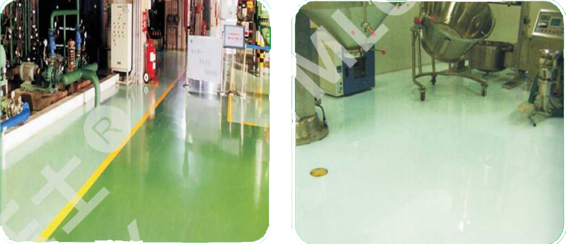 乙烯基面漆:將調(diào)配好的乙橢基面漆用鏝刀均勻涂 布,完工后使用整體地面光亮潔凈、顏色均一,無空鼓;