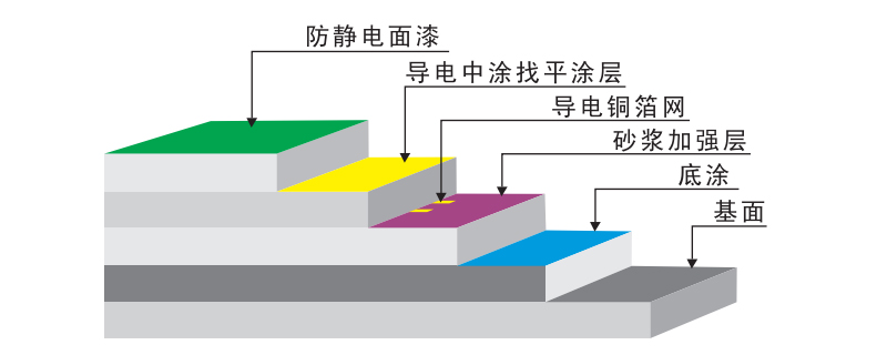 3、 防靜電底漆:采用滲透性及附著力特強(qiáng)的防 靜電環(huán)氧底漆滾涂一道,增強(qiáng)表面附著力;
