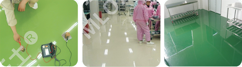 電子、微電子、通訊、計算機(jī)、精密儀器、 紡織、印刷、粉體化學(xué)、有機(jī)溶劑、瓦斯等一 切需要防靜電的工廠的墻面、地坪及儲油罐。