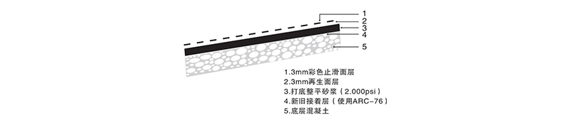 以ARC-76接著劑,加一倍水與純水泥拌合后,直 接置于混凝土面,確保新舊面層栗合。